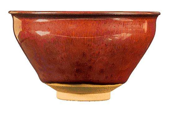 烧制兔毫釉的时候,温度偏高、气氛偏氧化时,便会形成过温的微过火"柿红釉",因其釉色像成熟的柿子的颜色而得名,属于杂色釉中的佳品。