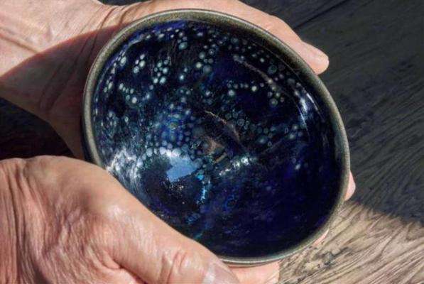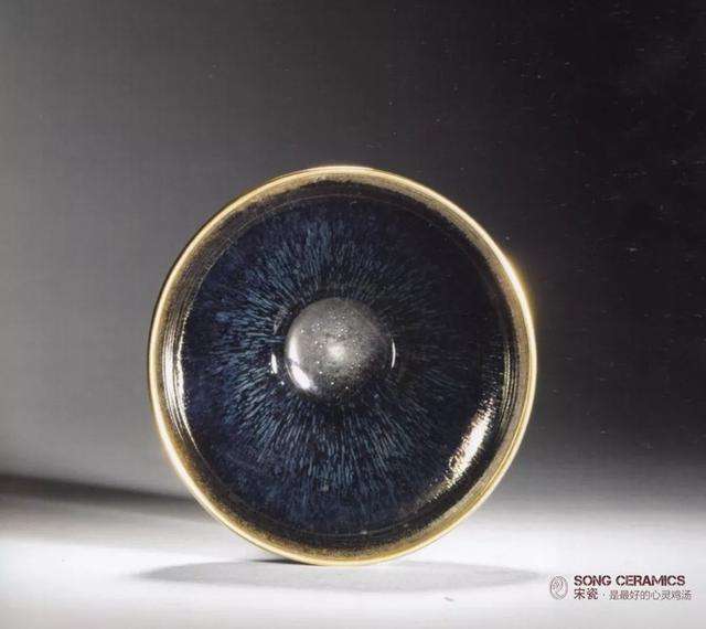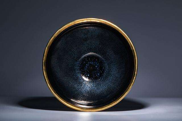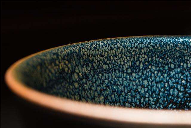 日本古籍《君台观左右帐记》曾记载,"曜变,建盏之无上神品,乃世上罕见之物,其地黑,有小而薄之星斑,围绕之玉白色晕,美如织锦,万匹之物也"。
