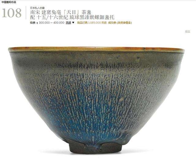 ▼南宋建窑银兔毫束口盏,2011年伦敦苏富比拍卖价:1174.8万